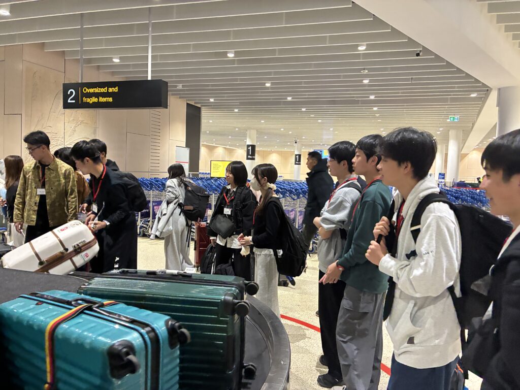 空港到着後はいよいよ入国審査と税関に挑戦です。生徒の皆さんは初めての体験に緊張している様子でしたが、数人のグループで協力して、何とか無事全員通過することができました。