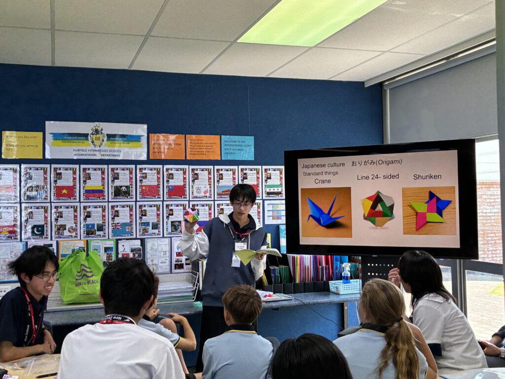本日は現地校2日目の登校です。登校し各グループに分かれて授業を受けたり、プレゼンテーションを行ったりしました。授業ではスポーツやダンスをしたり、料理やアートに取り組んだりして、ニュージーランドの文化に触れました。プレゼンテーションでは、日本で準備してきたプレゼンテーションを披露しました。学校の紹介や自分自身のこと、日本のことなどそれぞれで選んだトピックについて、実物やスライドを用いて紹介しました。日本では何度も行っているプレゼンですが、いざ、英語話者の前でプレゼンするとなると緊張している様子でした。いざ、プレゼンをしてみると、現地の生徒の皆さんも反応よく、興味をもって話を聞いてくれました。今日の機会をぜひ、自信につなげてもらいたいと思います。明日は、ホストファミリーや現地校の生徒とお別れです。よい1日になることを願います。
