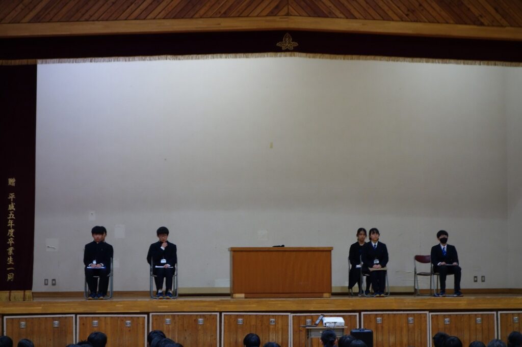 今回の選挙では、会長に2名、副会長に2名が立候補しました。候補者たちはこれまで、各クラスを回って公約を伝えたり質問に答えたりと、熱心に選挙活動を続けてきました。本日の演説会でも、全校生徒の前で自身の想いを堂々と発表し、聞く側もその熱意に応えるように真剣に耳を傾けていました。