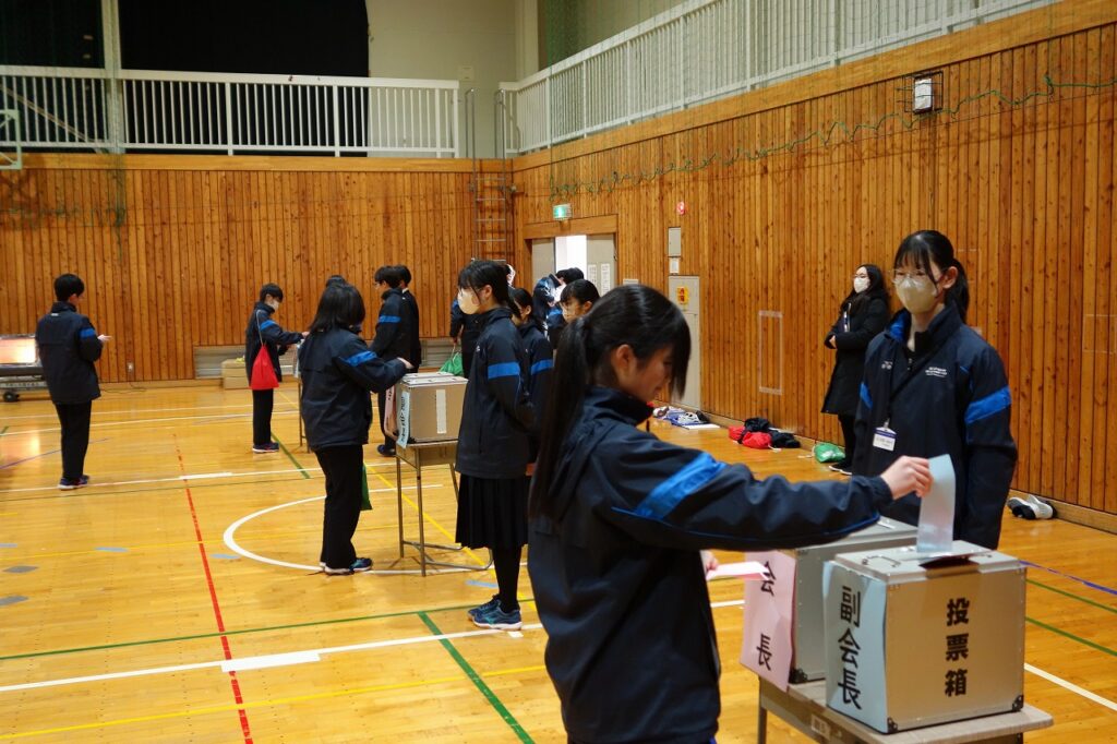 その後の投票は、選挙管理委員会の話の通り、厳粛な雰囲気の中で実施されました。生徒一人ひとりが一票の重みを感じながら、次代のリーダーを託す一票を投じていました。