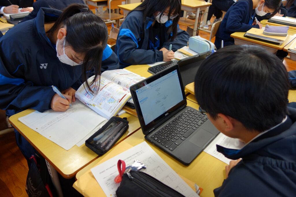 3年生の社会科では、現在、公民分野の学習を進めています。本日は「ニュース解説をしよう」をテーマに、今の日本の政治や経済について調べ、わかりやすく説明する活動を行いました。