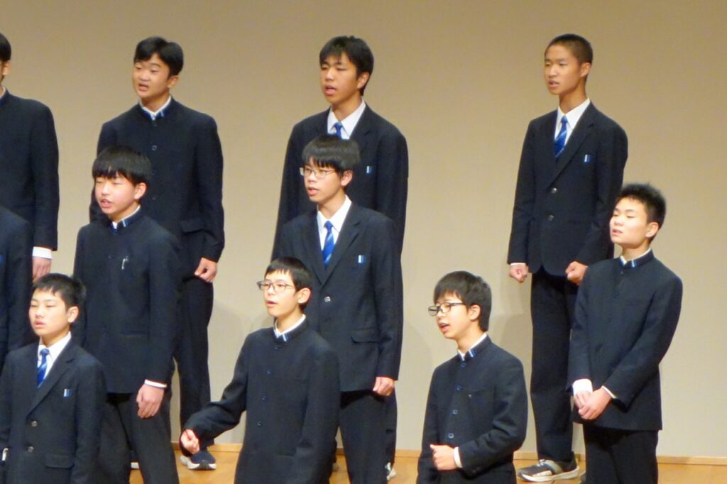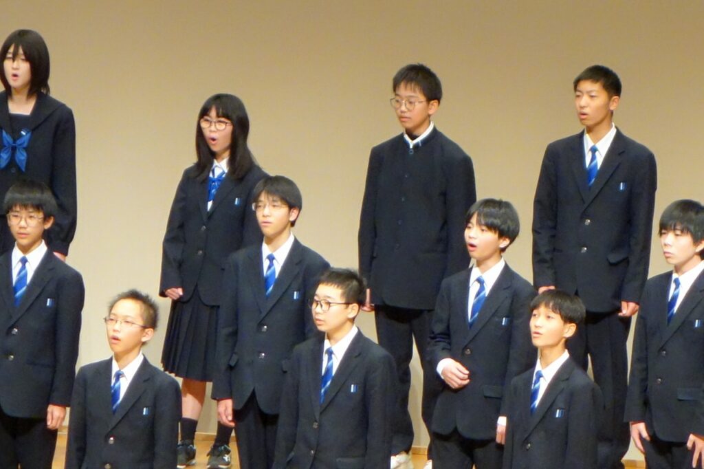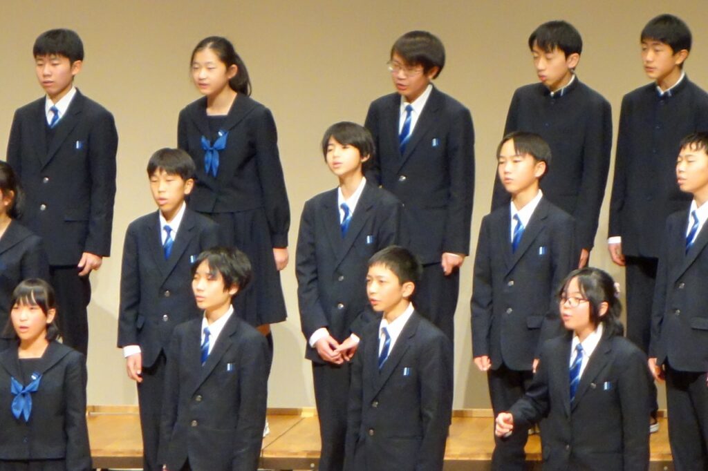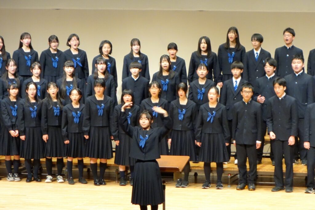 その後、1年A組「Tomorrow」、1年B組「マイバラード」、1学年合唱「COSMOS」が発表されました。中学校に入学して約8か月、新しい仲間とともに、元気で明るい歌声を会場いっぱいに響かせていました。
